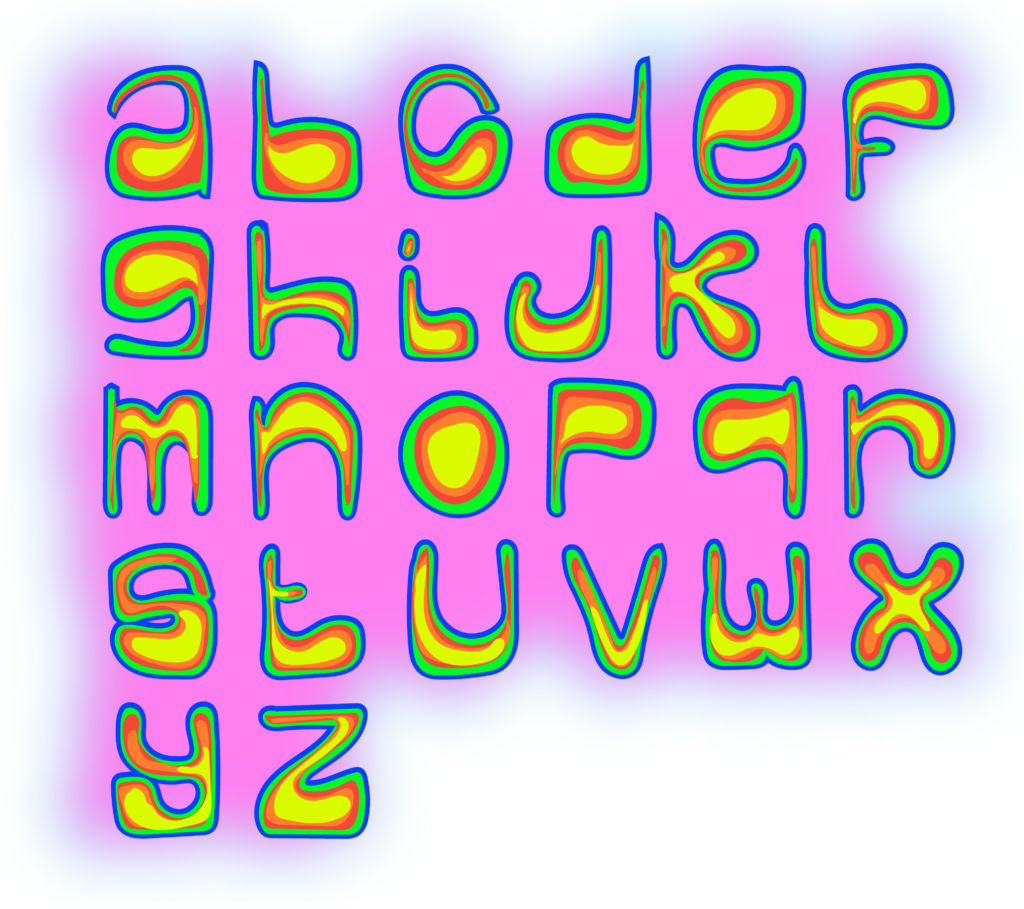 Handmade artisanal font inspired by infrared heat-map (or thermal map) imagery.
